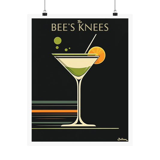 The Bee's Knees Cocktail Poster - Matte Vertical Posters, Cocktail Art Print, Decor, Wall Art, Home Decor, Cocktail Gift