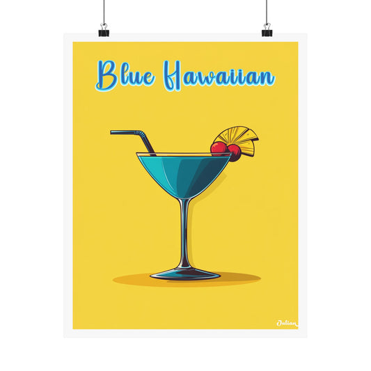 The Blue Hawaiian Cocktail Poster - Matte Vertical Posters, Cocktail Art Print, Decor, Wall Art, Home Decor, Cocktail Gift