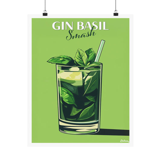 The Gin Basil Smash Cocktail Poster - Matte Vertical Posters, Cocktail Art Print, Decor, Wall Art, Home Decor, Cocktail Gift