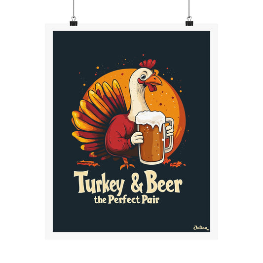 Happy Thanksgiving Turkey and Beer Poster - Matte Vertical Posters, Thanksgiving Art Print, Decor, Wall Art, Home Decor, Gift Thanksgiving