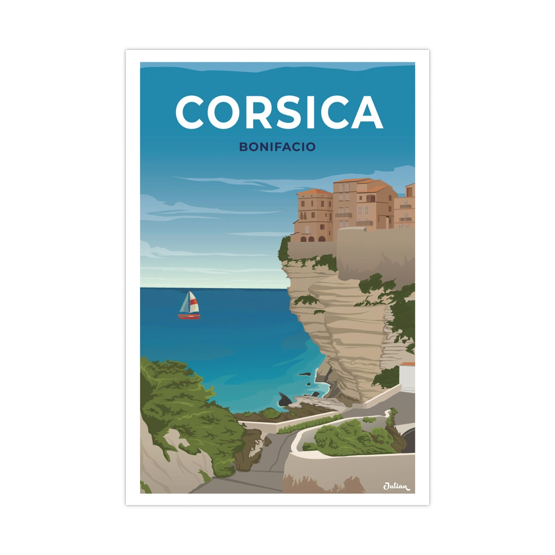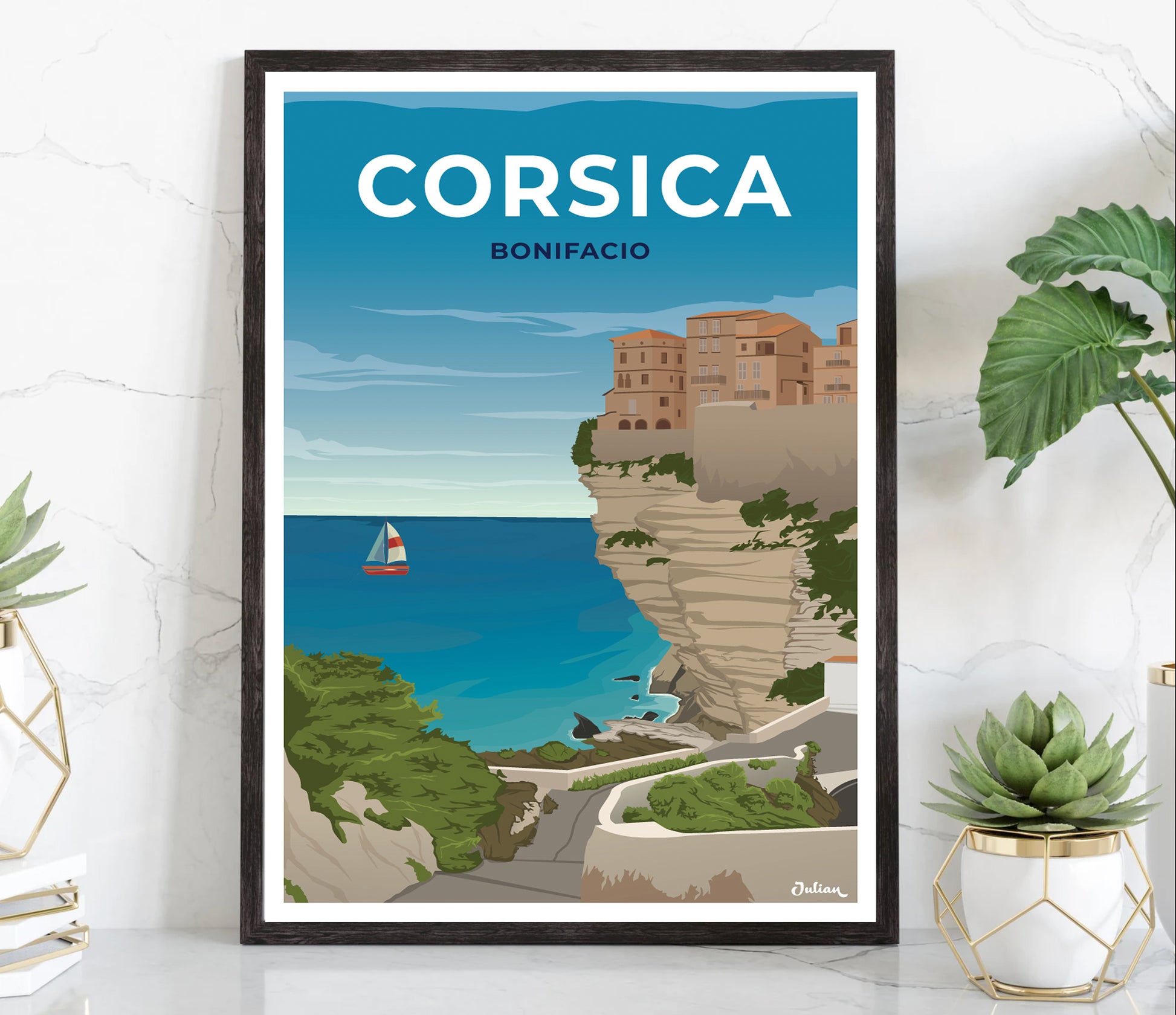 You are viewing the Bonifacio Print / Corsica Travel Poster / Travel Illustration / Travel Keepsake / World Travel Poster / Gift Idea/ Vintage