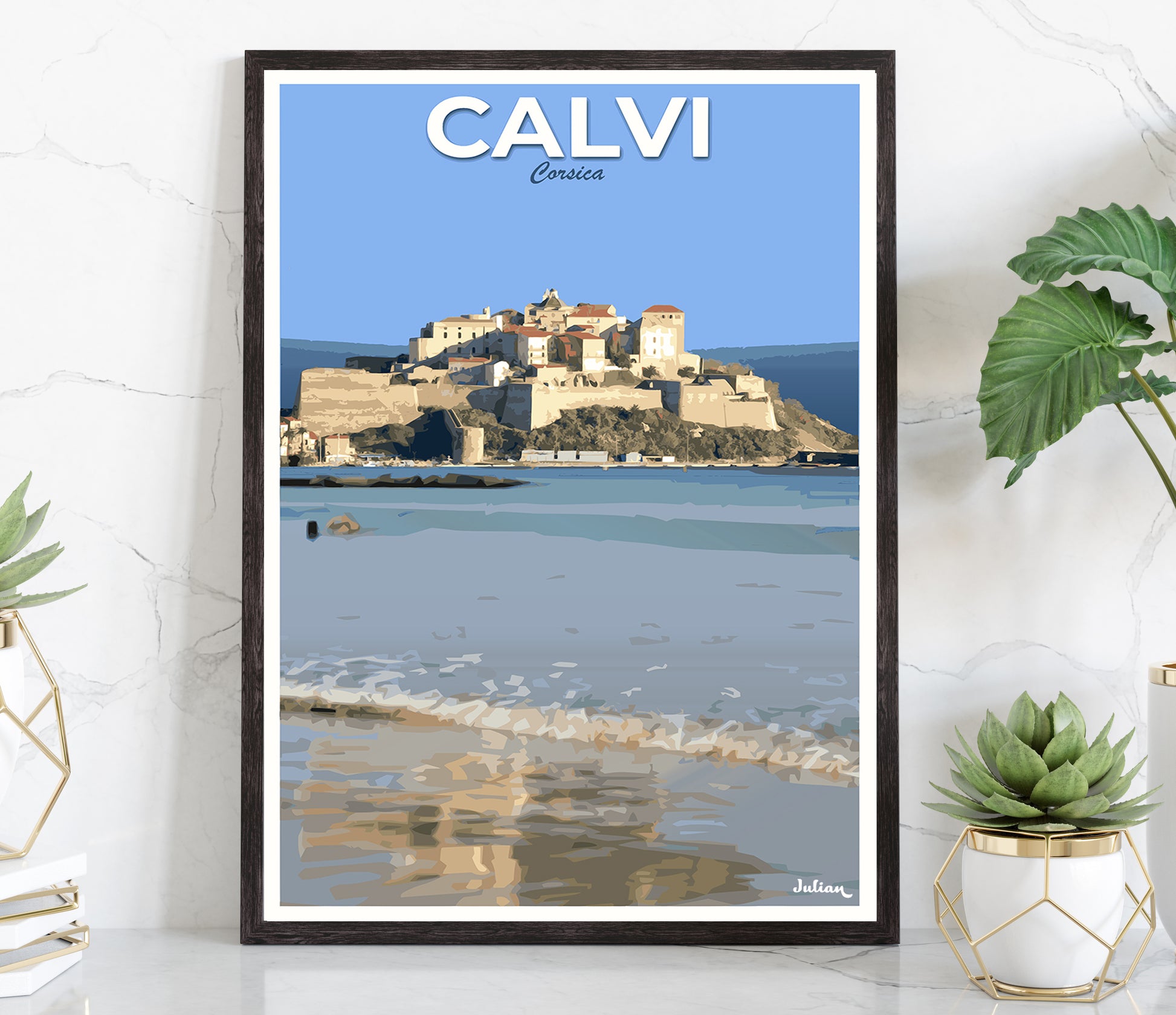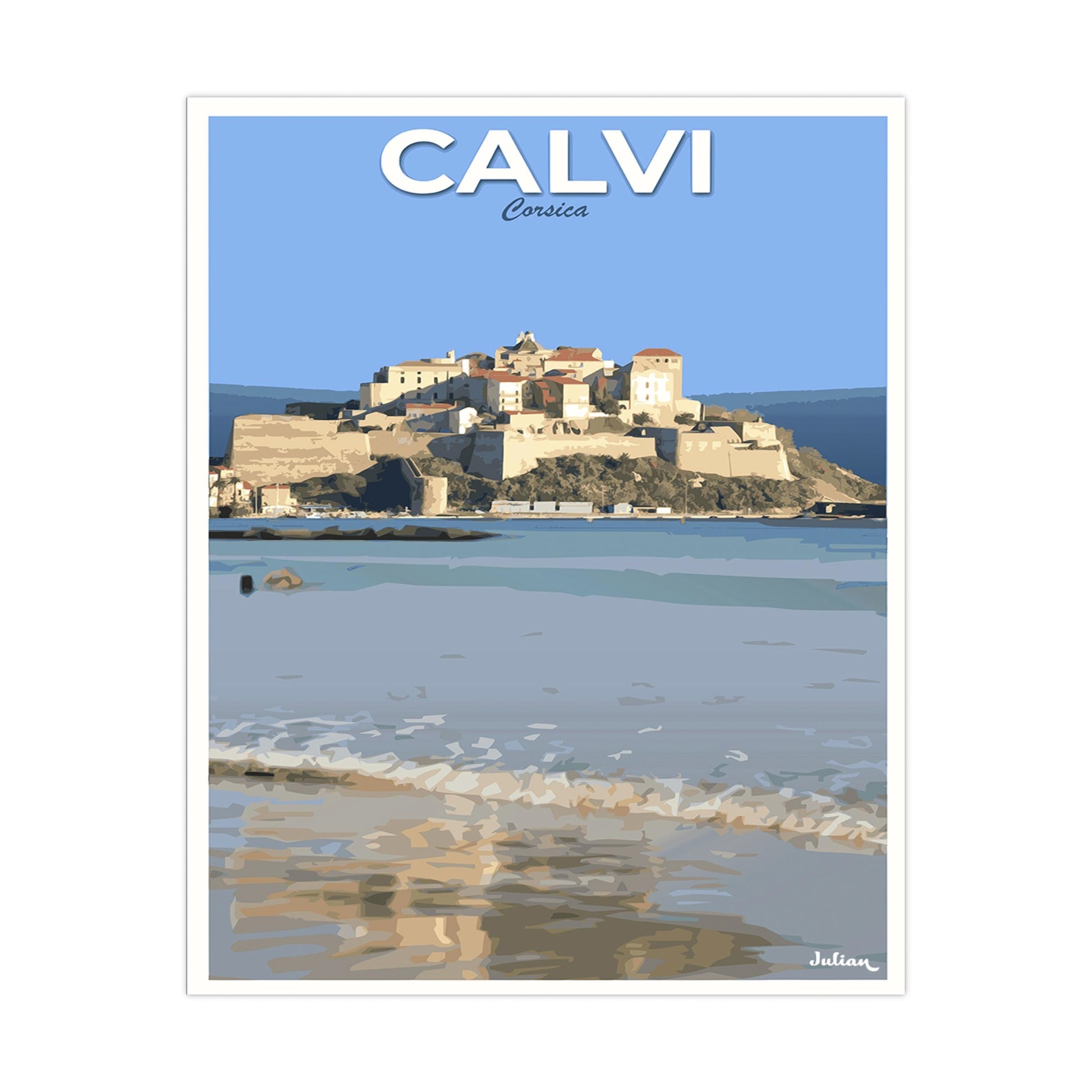 You are viewing the Calvi Print / Corsica Travel Poster / Travel Illustration / Travel Keepsake / World Travel Poster / Gift Idea/ Vintage