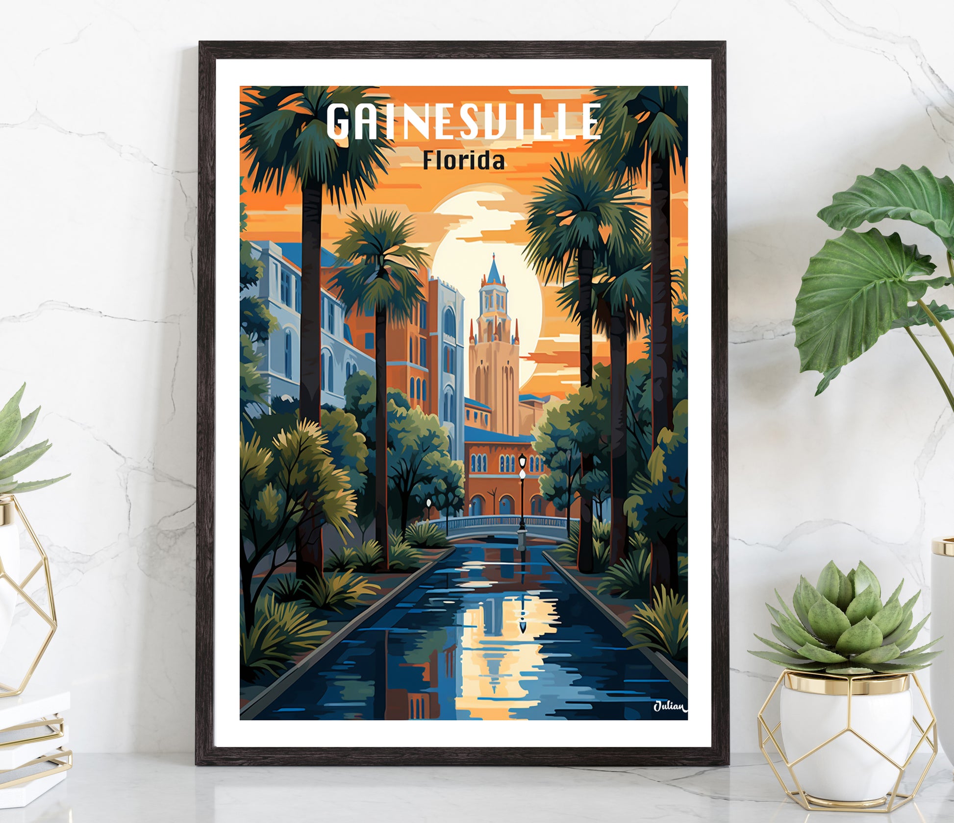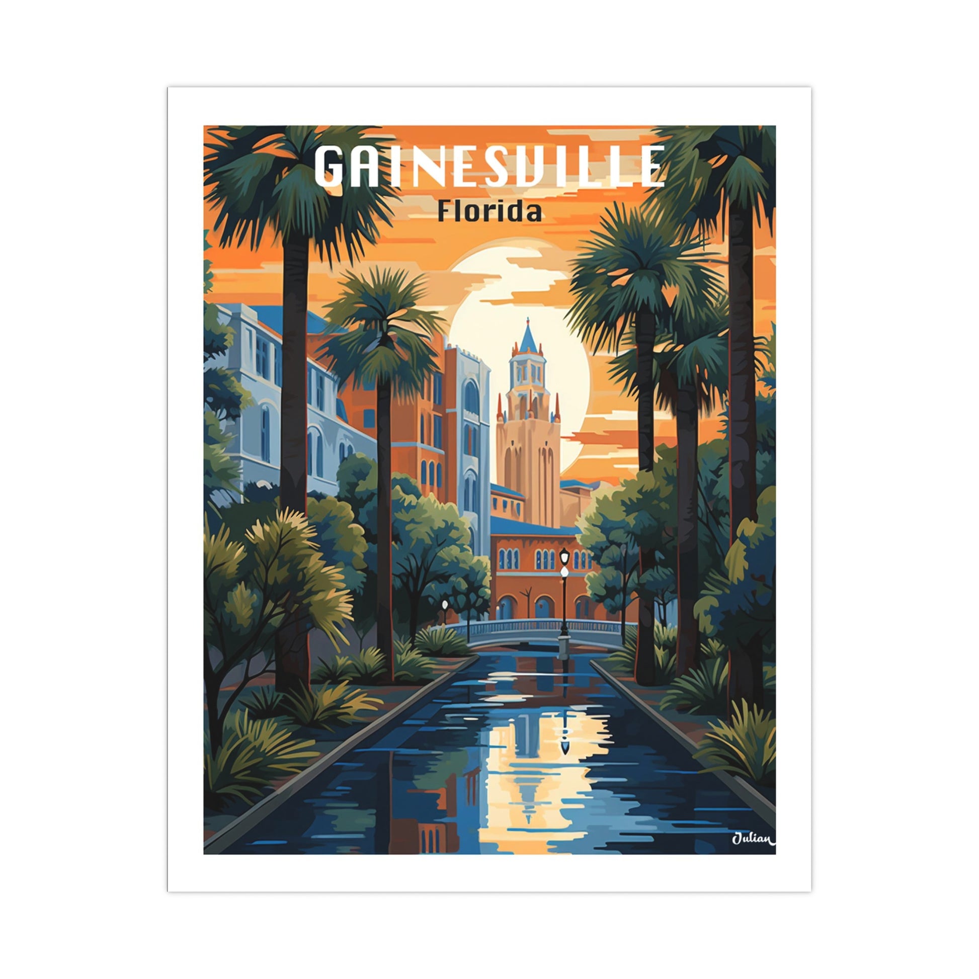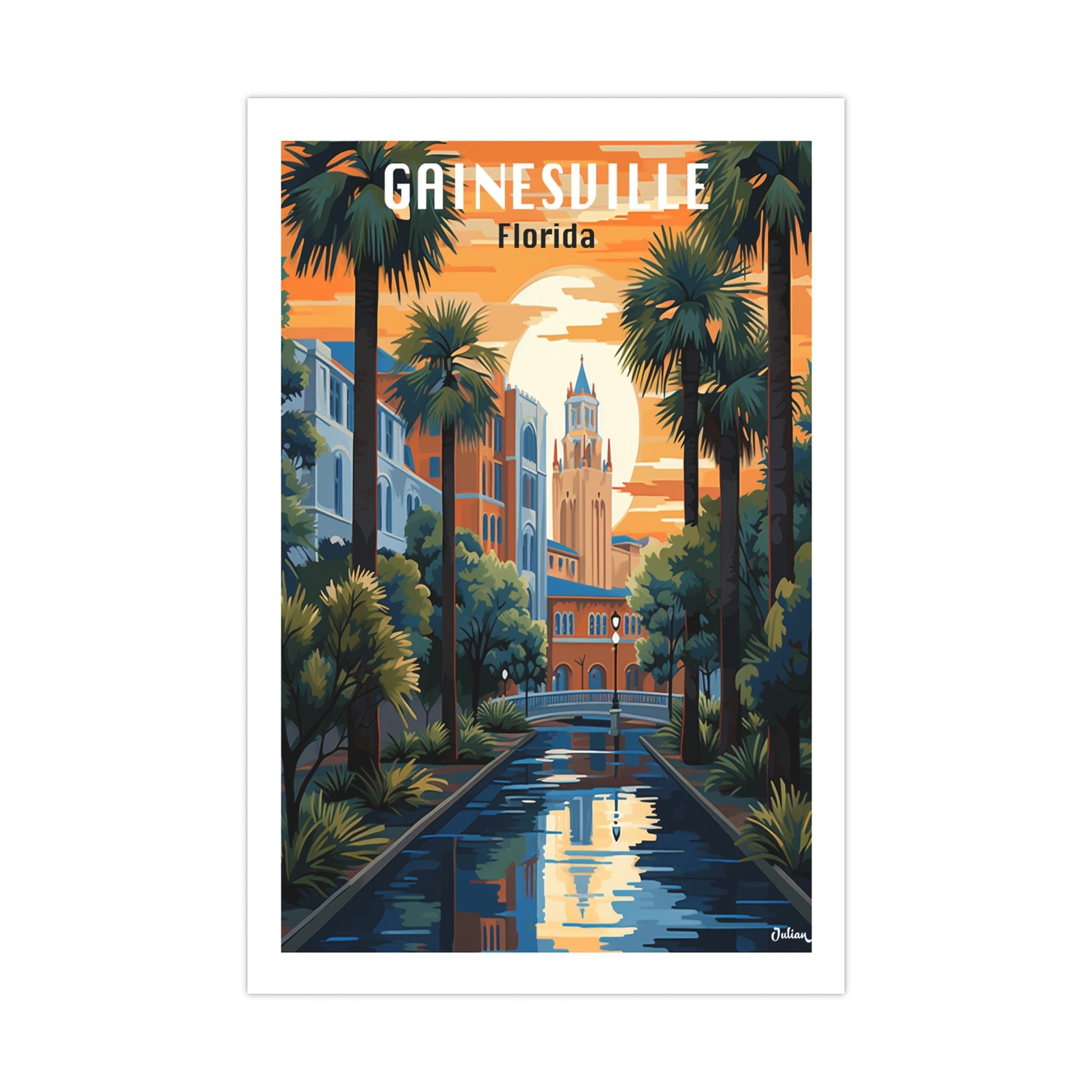 Immerse yourself in the vibrant charm of Gainesville, Florida, through our captivating travel poster.