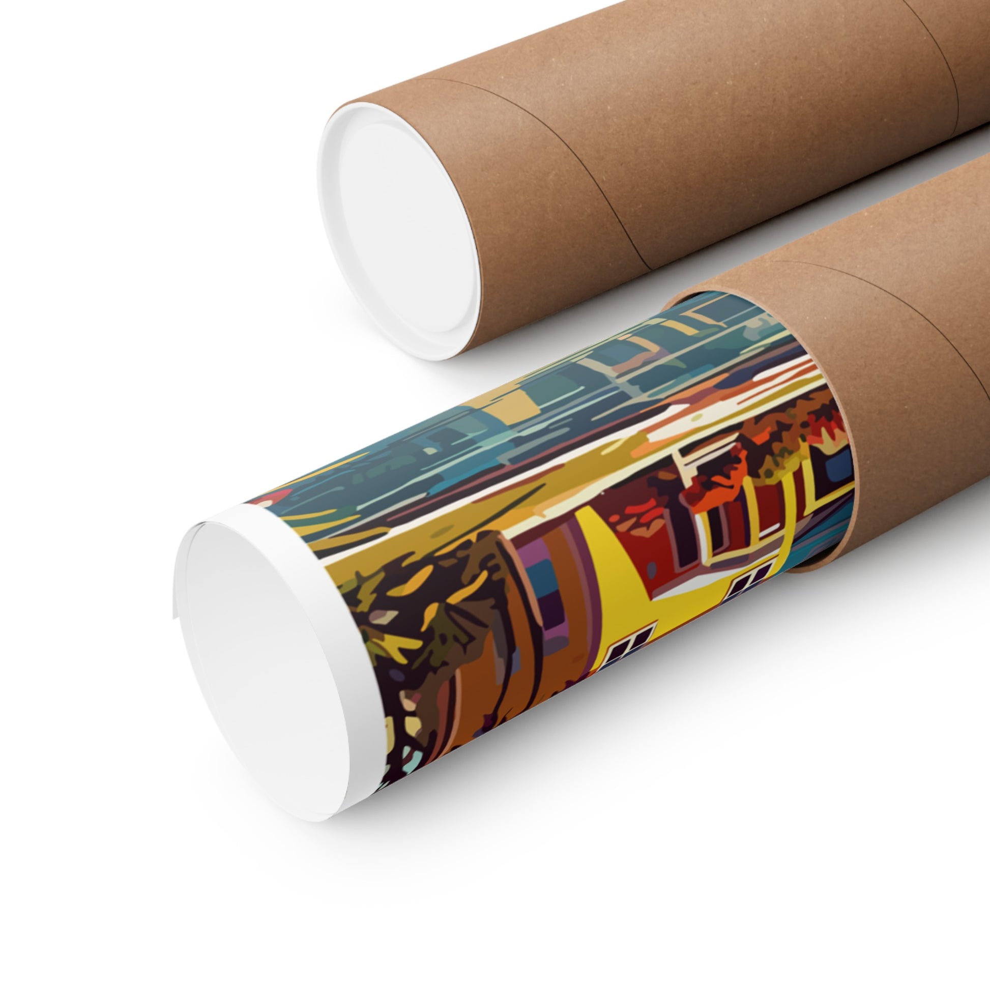 Discover the charm of Melbourne, Florida, through this striking travel poster that features a magnificent mansion painted in vibrant shades of red and orange, beautifully reflected in the tranquil waters of a nearby canal. The lush tropical foliage and balmy breezes capture the essence of Florida living, while the architecture speaks to Melbourne's unique blend of modernity and tradition.