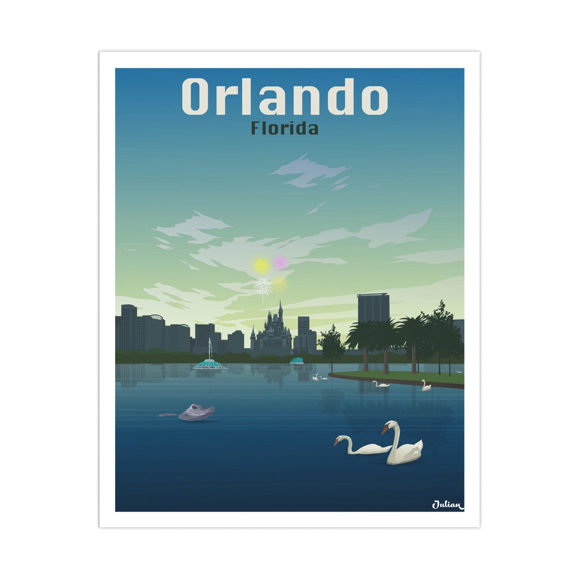 Discover the enchanting allure of Orlando through our vibrant travel poster, aptly titled 'Orlando: The City Beautiful'.