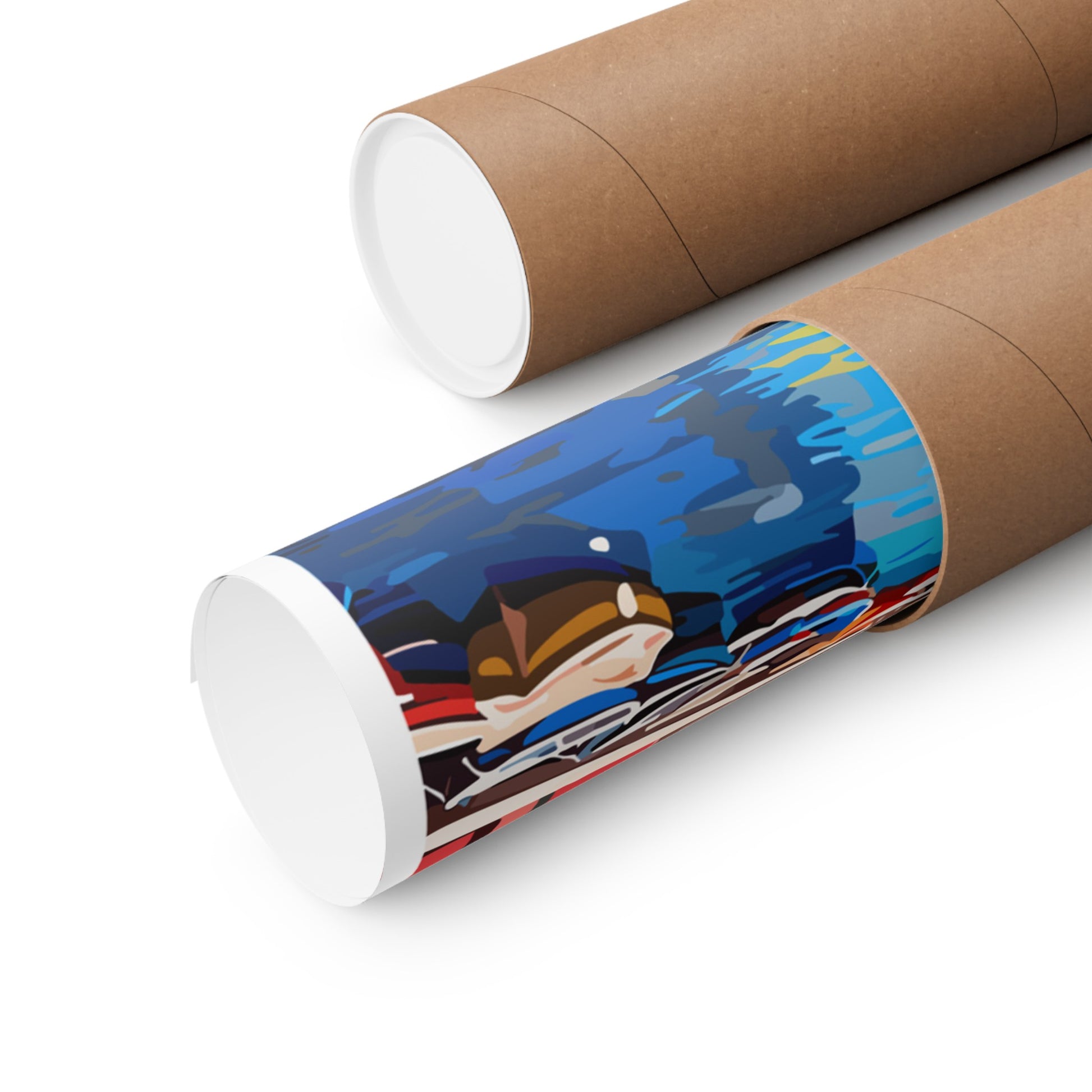 Discover the hidden gem of Ponza, Italy, with our stunning travel poster. This exquisite artwork captures the island's enchanting beauty, featuring crystal-clear turquoise waters, rugged cliffs, and charming pastel-colored houses.
