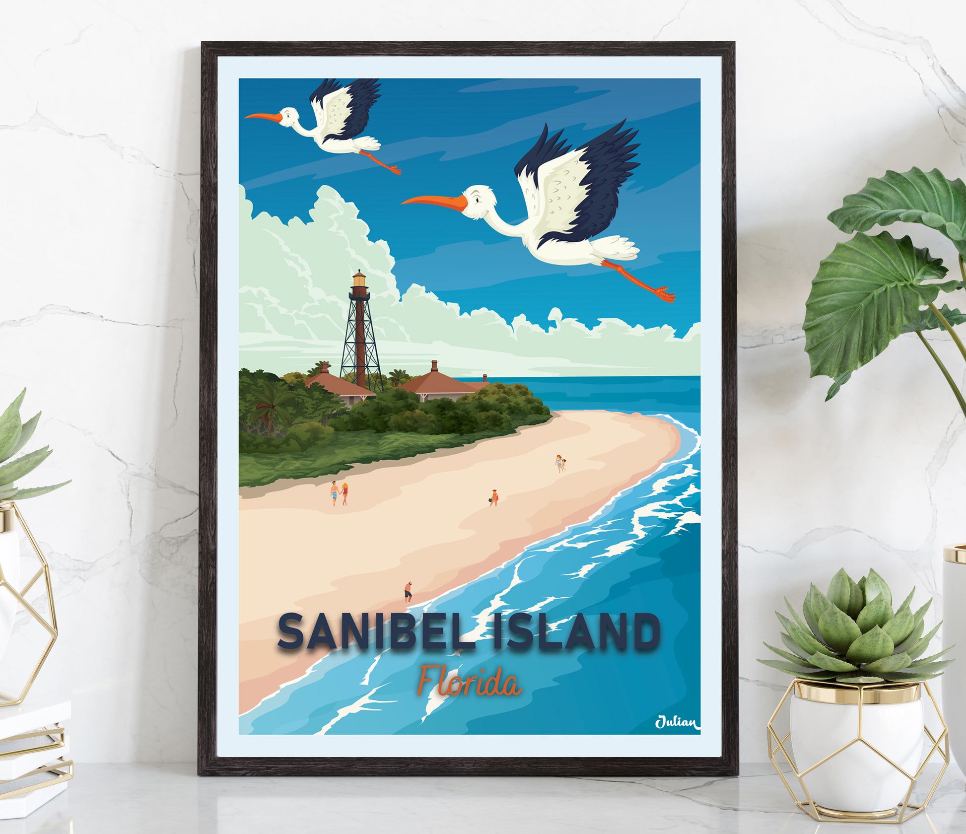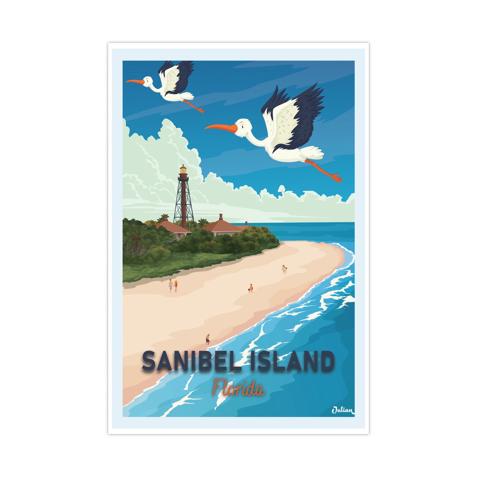 Escape to the tranquil shores of Sanibel Island with our picturesque travel poster, 'Sanibel's Serene Sanctuary.'