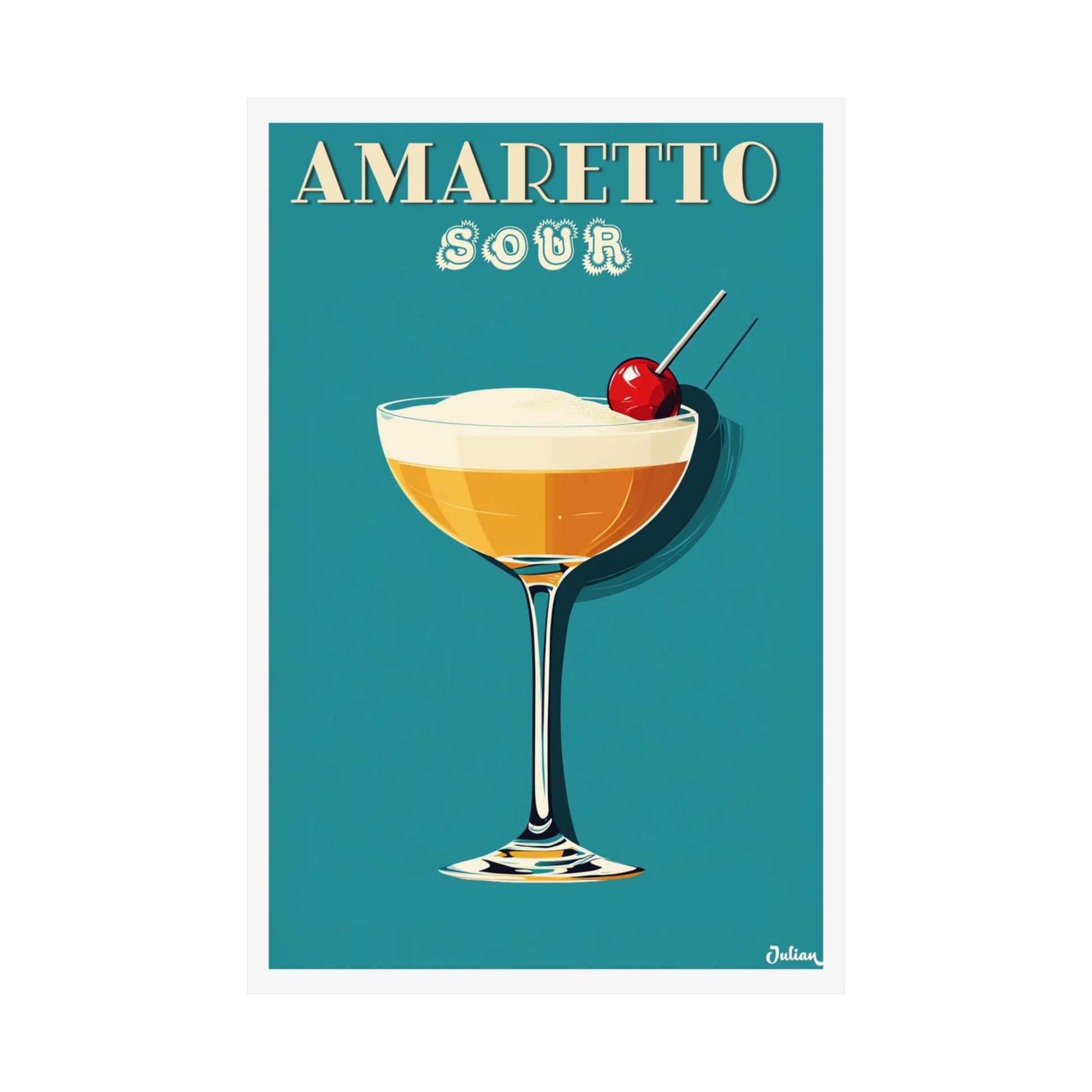 Bring timeless elegance to your space with the "Amaretto Sour Cocktail Poster"! This captivating design showcases the rich, golden hues of the classic Amaretto Sour, beautifully garnished with a cherry and a slice of citrus. Perfect for home bars, kitchens, or cocktail enthusiasts, this poster celebrates the sophistication and sweet-tart balance of this iconic drink.