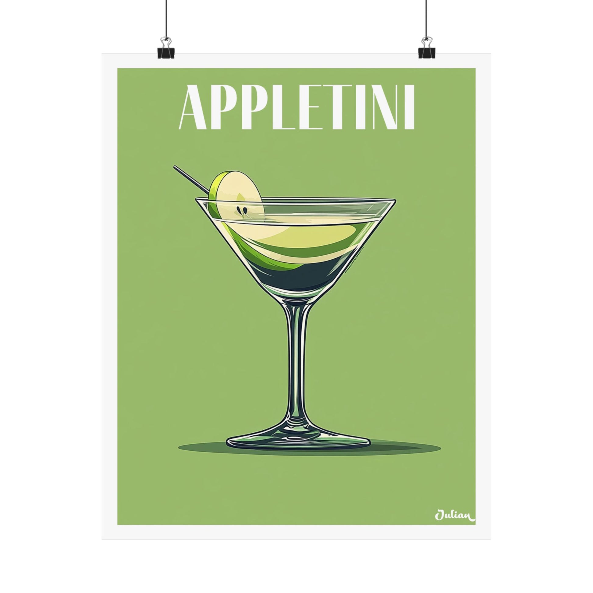 The Appletini Cocktail Poster - Matte Vertical Posters, Cocktail Art Print, Decor, Wall Art, Home Decor, Cocktail Gift