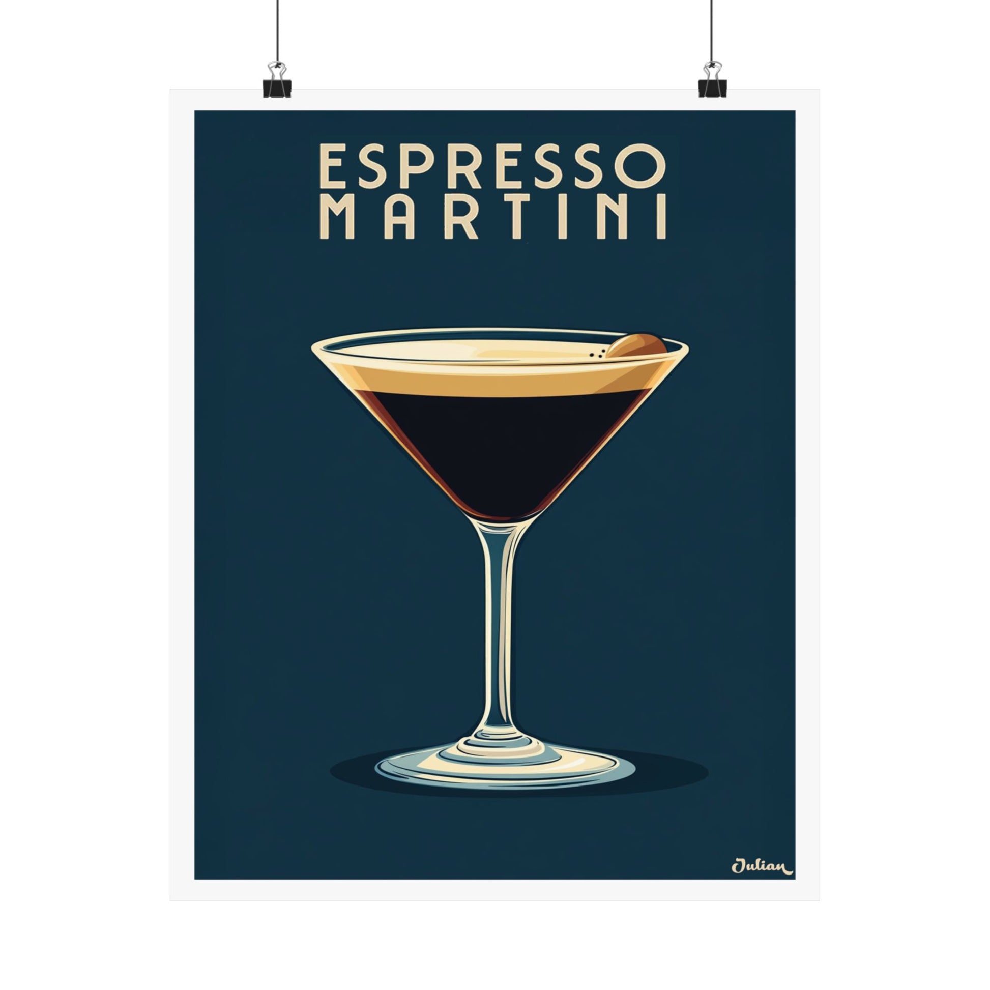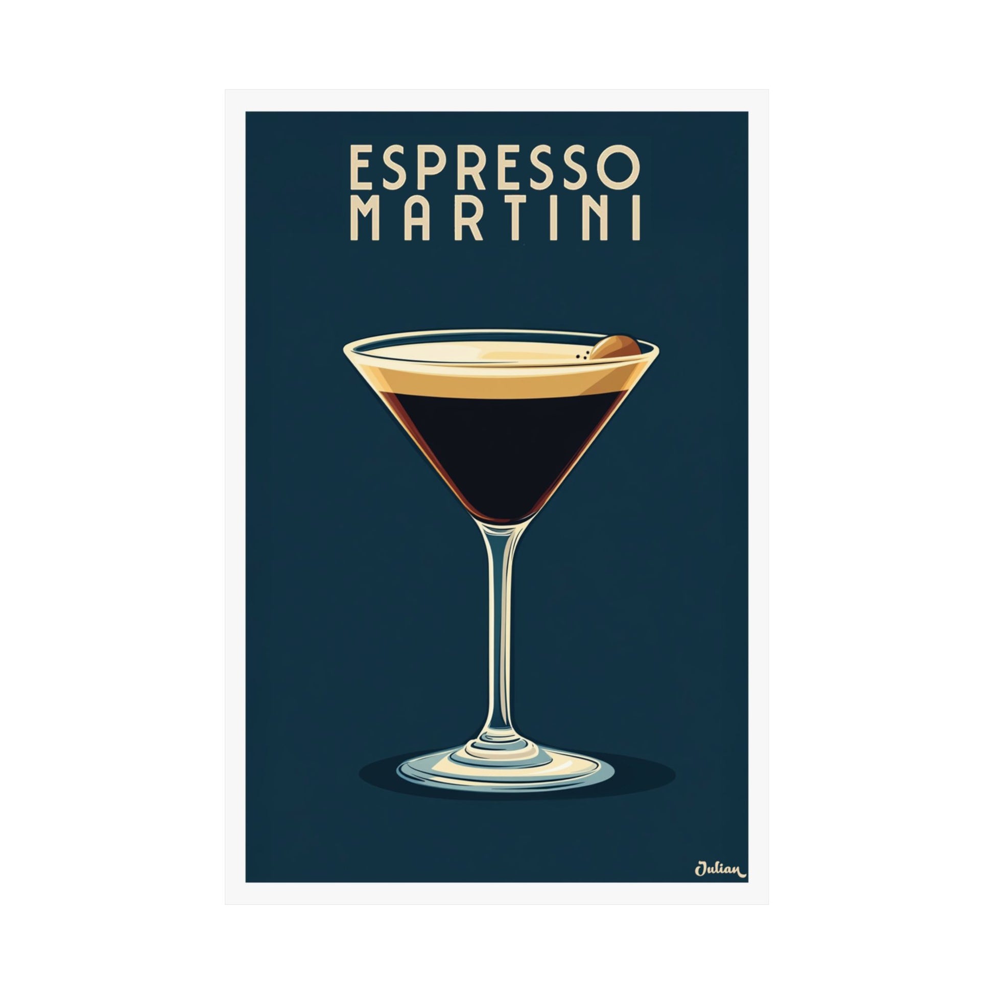 Awaken your senses with the "Espresso Martini Cocktail Poster"! This stylish design showcases the rich, velvety allure of the iconic espresso martini, topped with its signature creamy froth and coffee bean garnish. Perfect for home bars, kitchens, or coffee and cocktail enthusiasts, this poster celebrates the bold flavors and chic sophistication of this modern classic.