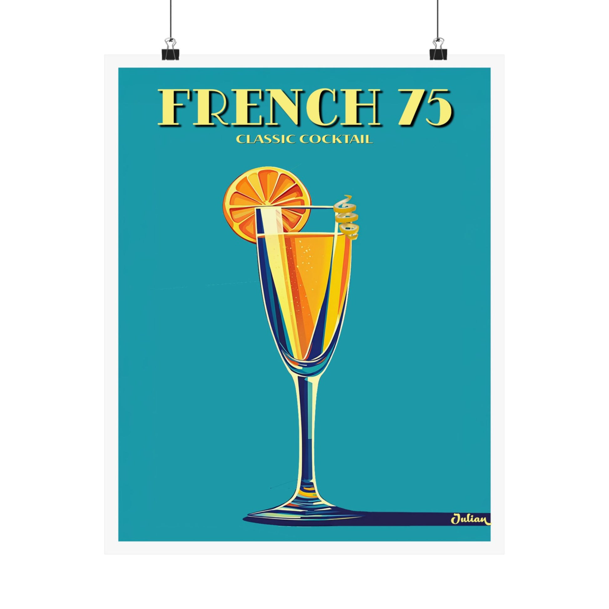The French 75 Cocktail Poster - Matte Vertical Posters, Cocktail Art Print, Decor, Wall Art, Home Decor, Cocktail Gift