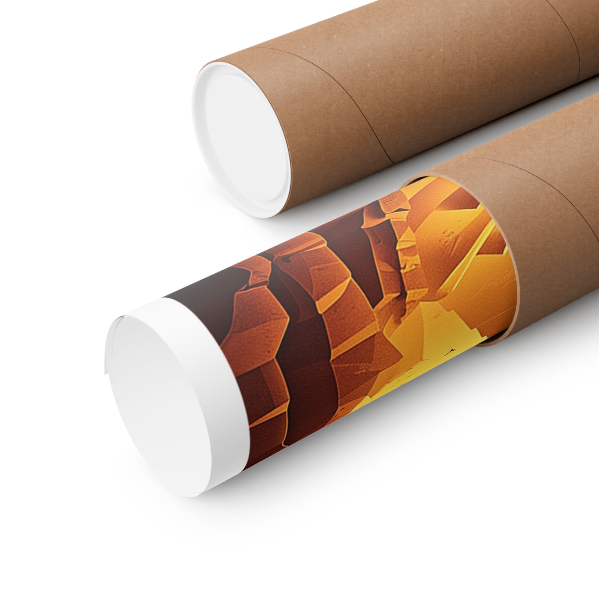 Embark on a journey through the enigmatic legacy of the pyramids with this mystical travel poster. A towering pyramid looms in the backdrop, casting a shadow over a man standing at the entrance of a cave, his silhouette gazing in awe. The scene is steeped in sandy tones of brown and yellow, evoking the desert's timeless allure. Above, mysterious objects dot the sky alongside multiple planets, suggesting an otherworldly connection.