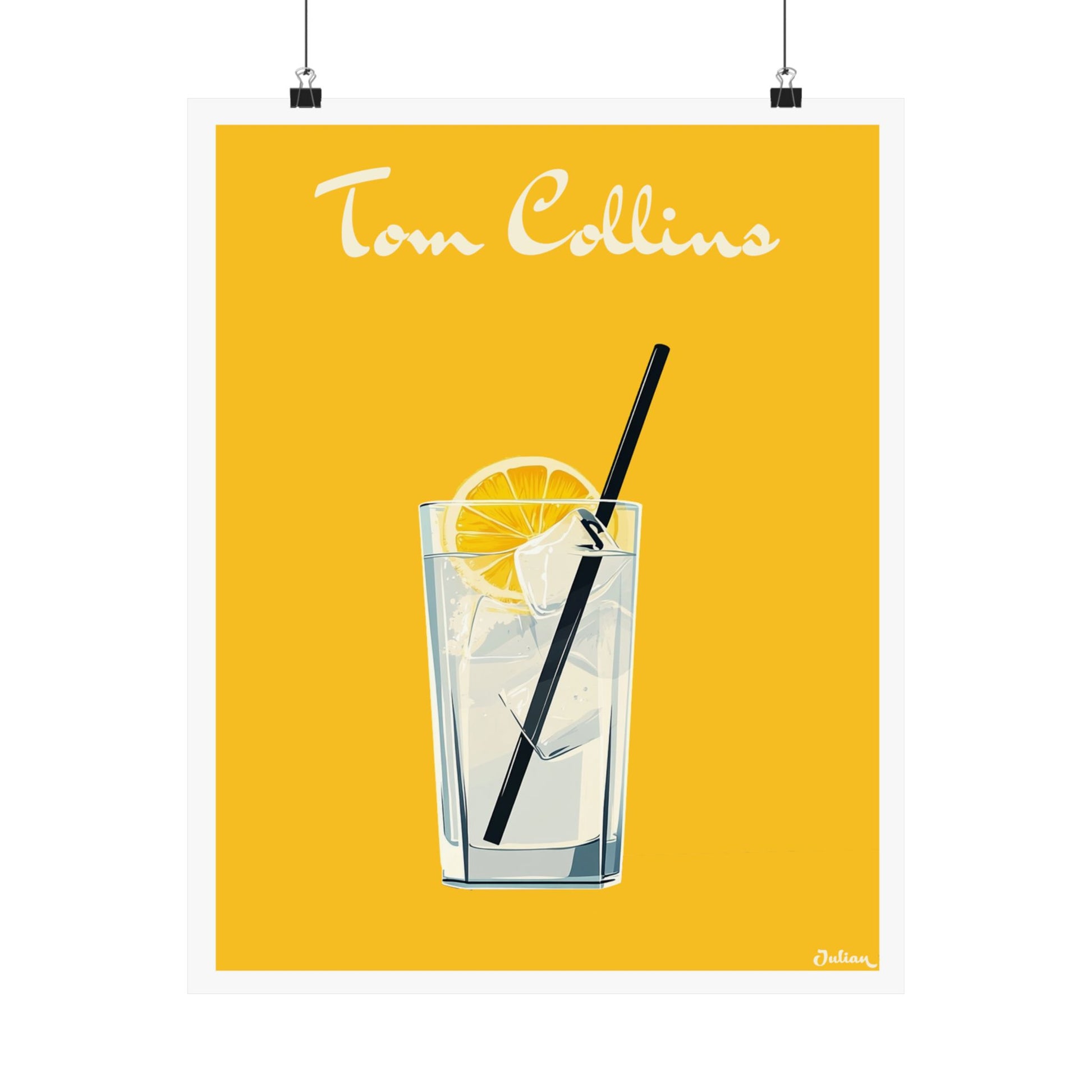 The Tom Collins Cocktail Poster - Matte Vertical Posters, Cocktail Art Print, Decor, Wall Art, Home Decor, Cocktail Gift