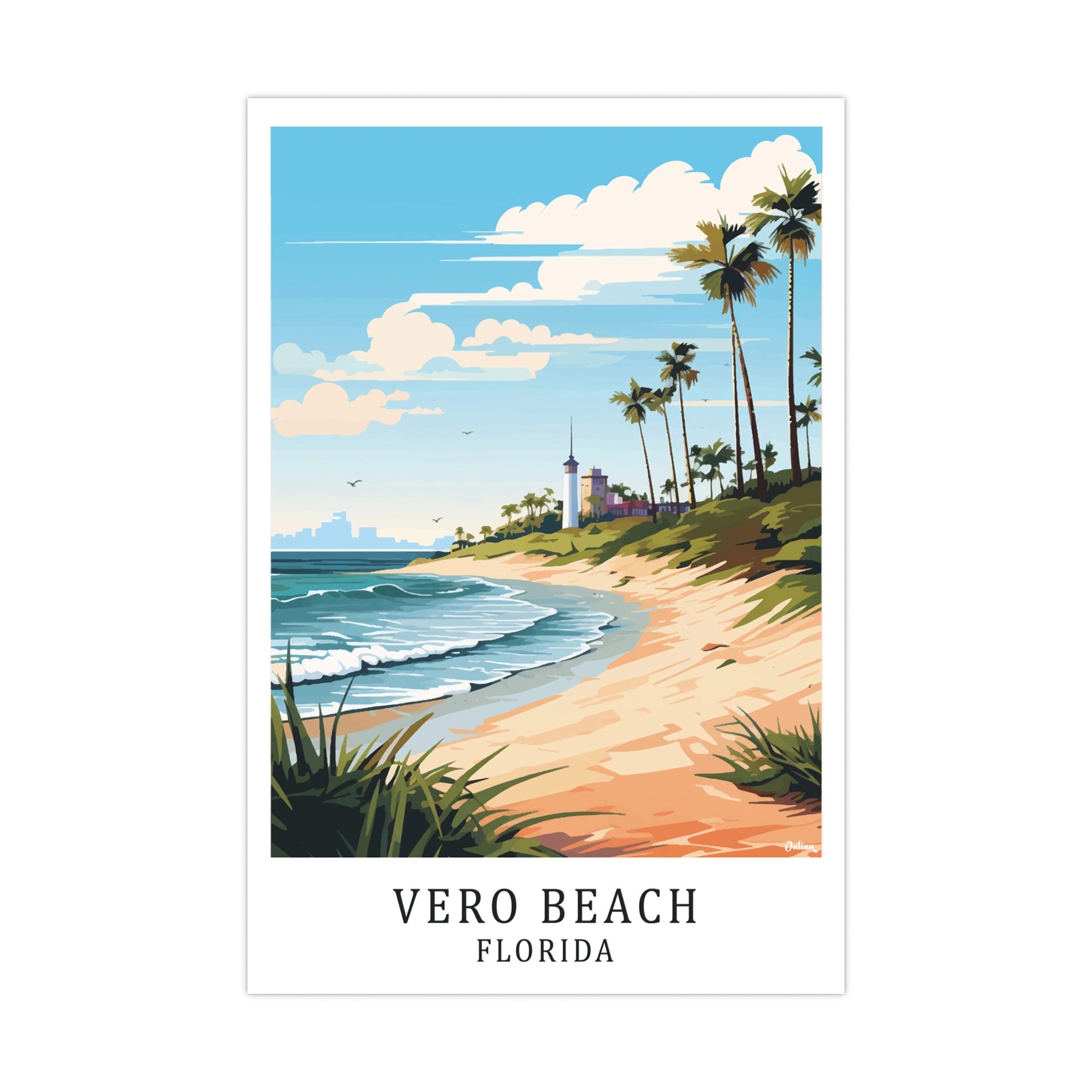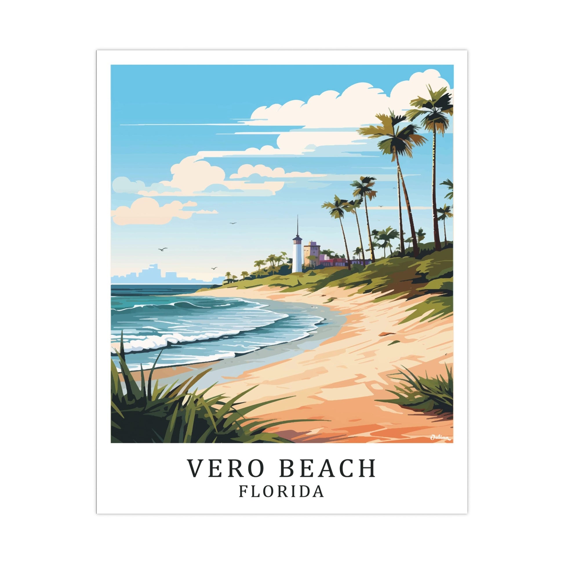 Discover the coastal allure of Vero Beach in our striking travel poster, where the tranquil beauty of Florida's shoreline is brought to life.