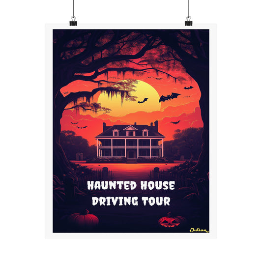 Haunted House Halloween Poster - Matte Vertical Posters, Halloween Art Print, Coastal Decor, Wall Art, Home Decor, Gift for Halloween