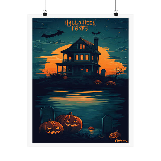 Halloween Party Poster - Matte Vertical Posters, Halloween Art Print, Coastal Decor, Wall Art, Home Decor, Gift for Halloween
