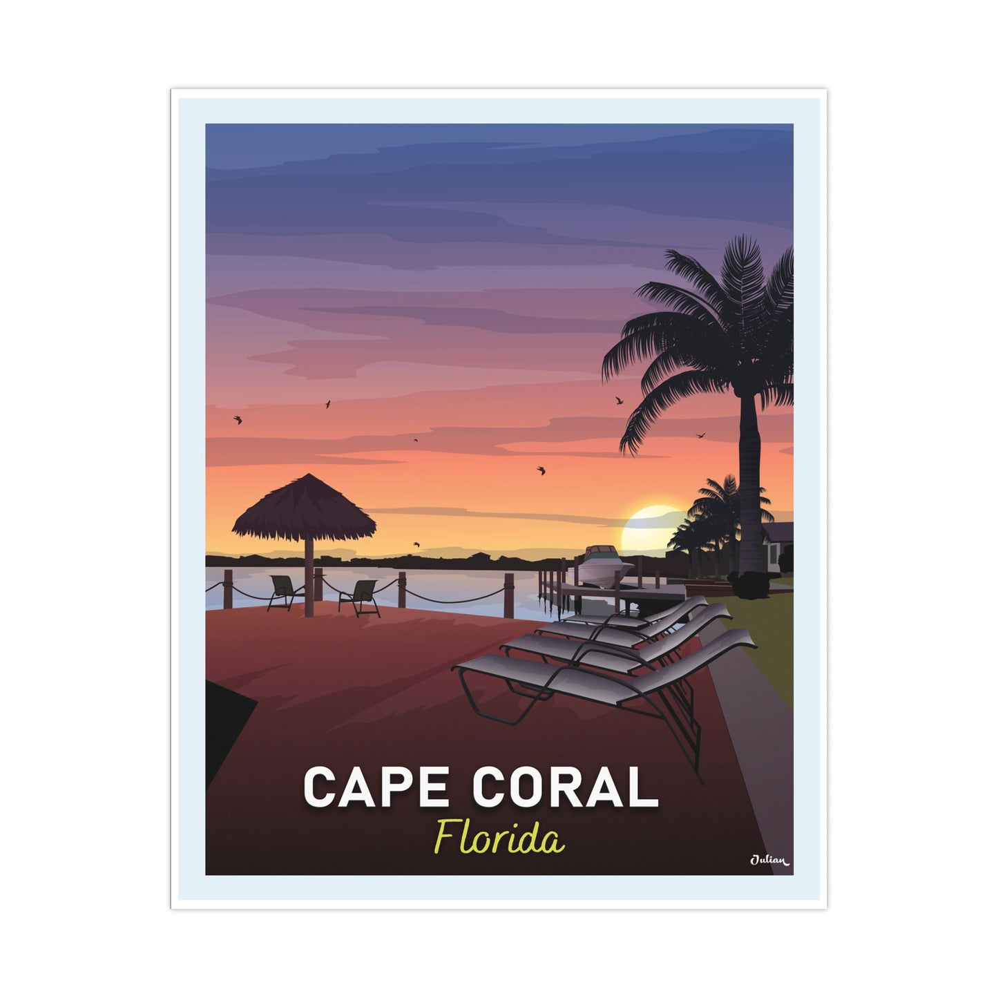 The travel poster of Cape Coral, Florida, encapsulates the serene and idyllic lifestyle that this waterfront paradise offers.