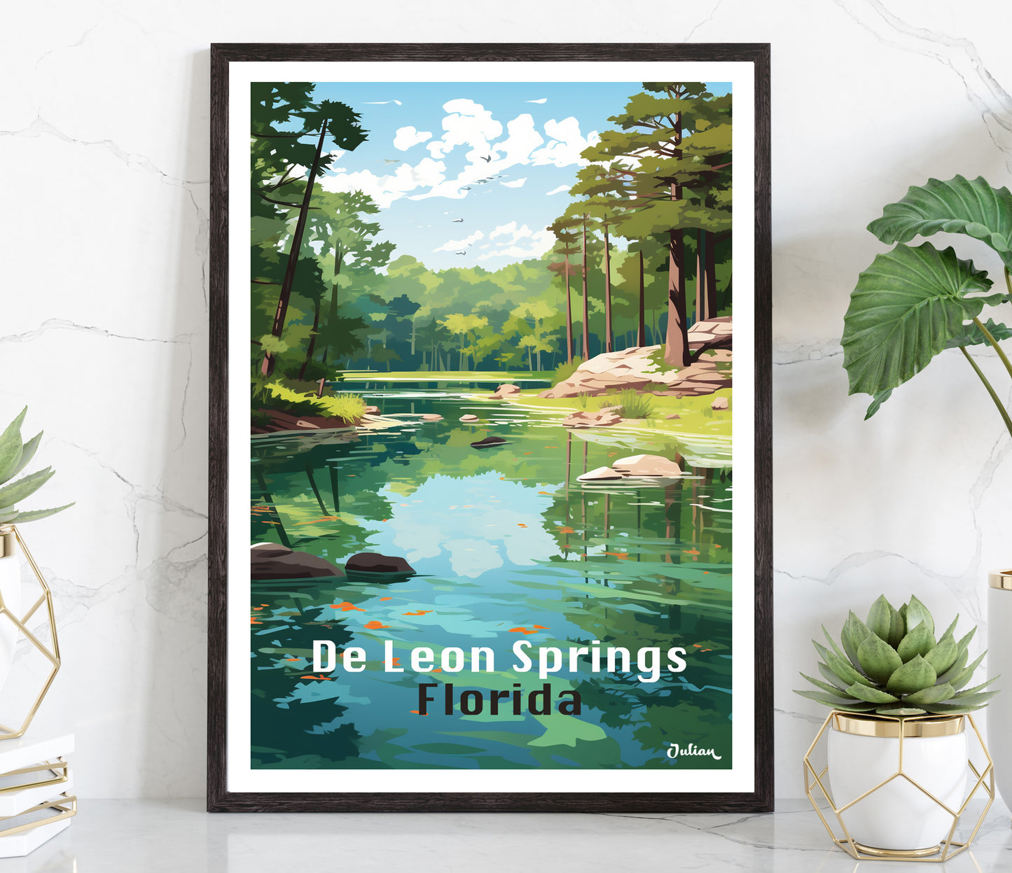 This serene scene captures the essence of DeLeon Springs, a natural haven where the harmony of flora, fauna, and flowing water invites visitors to pause and revel in the beauty of untouched Florida.