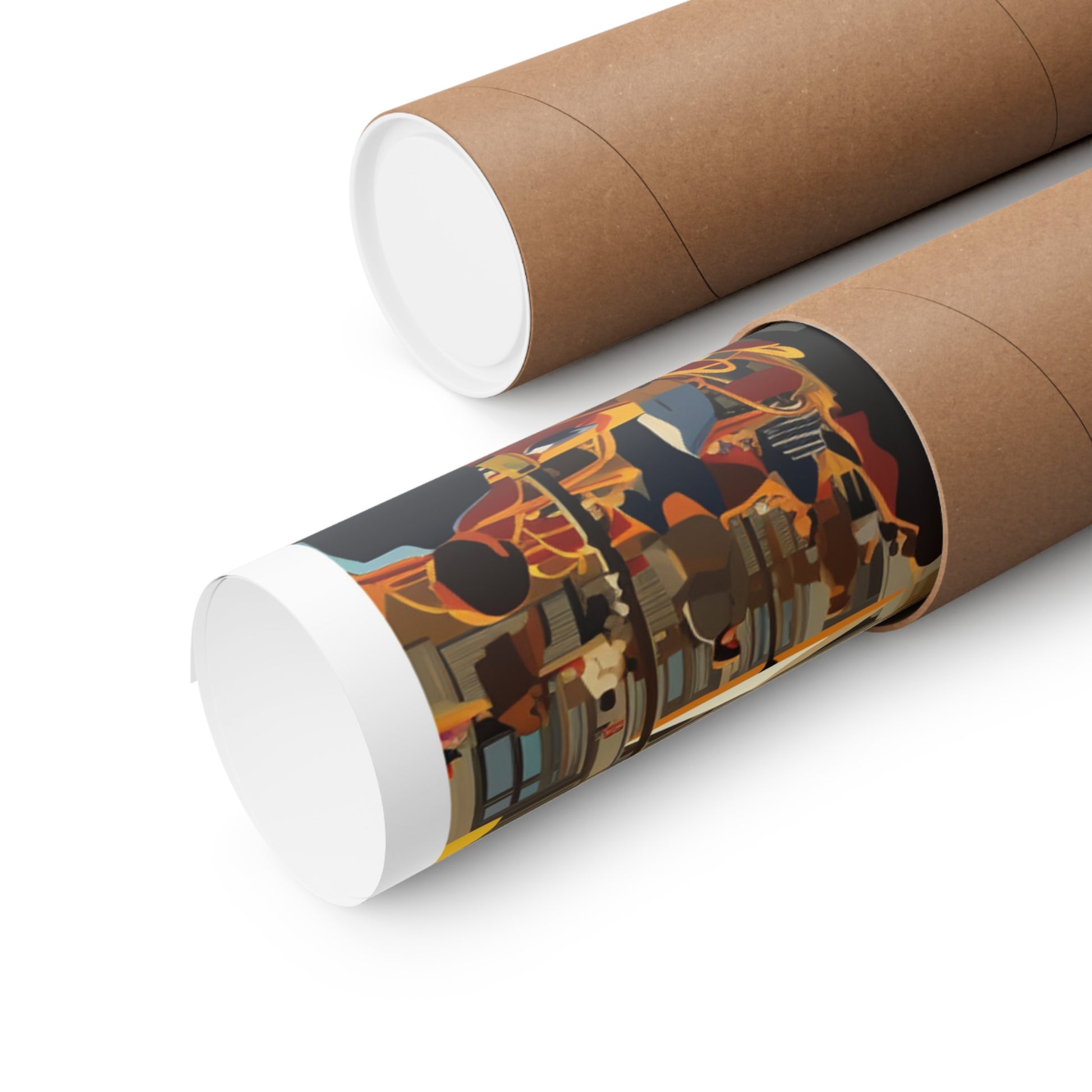 Step into the charming ambiance of Madrid with our captivating Café de la Plaza travel poster. This elegant artwork captures the essence of one of the city's beloved cafés, featuring cozy outdoor seating, stylish patrons, and the historic architecture of Plaza Mayor.
