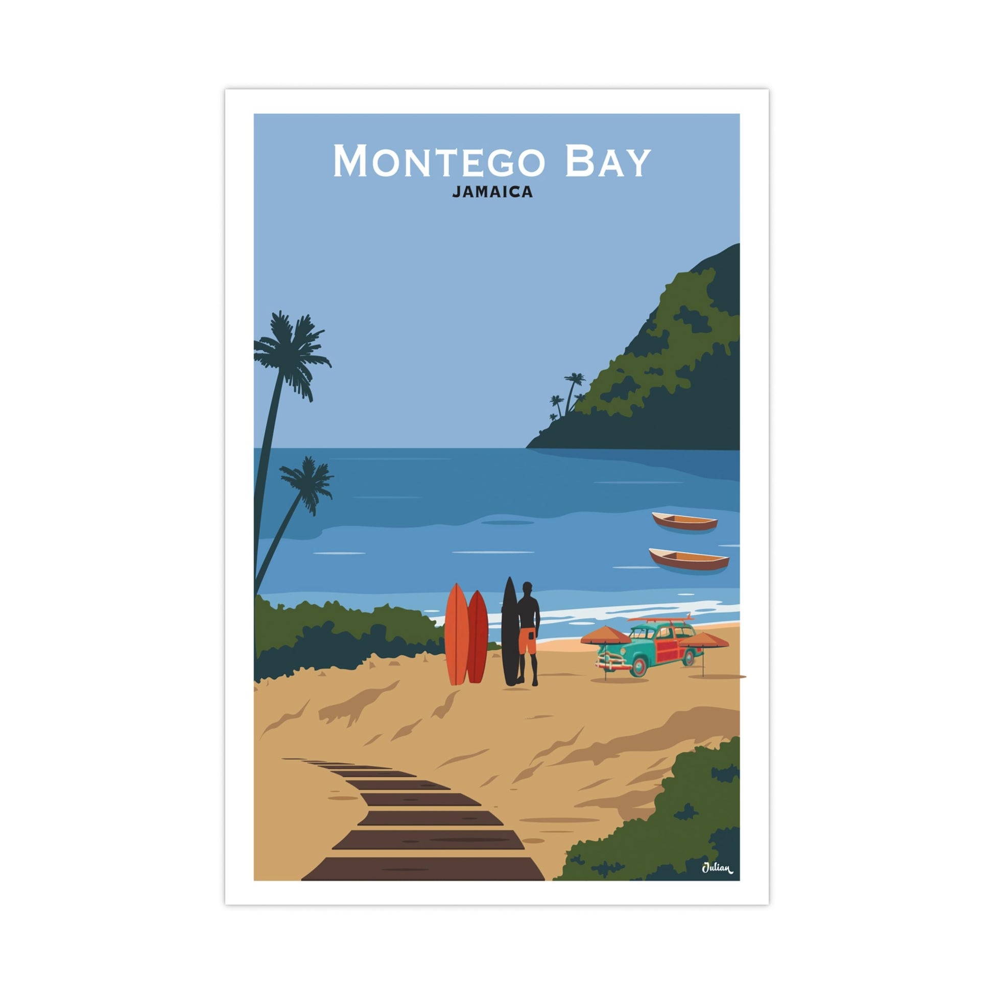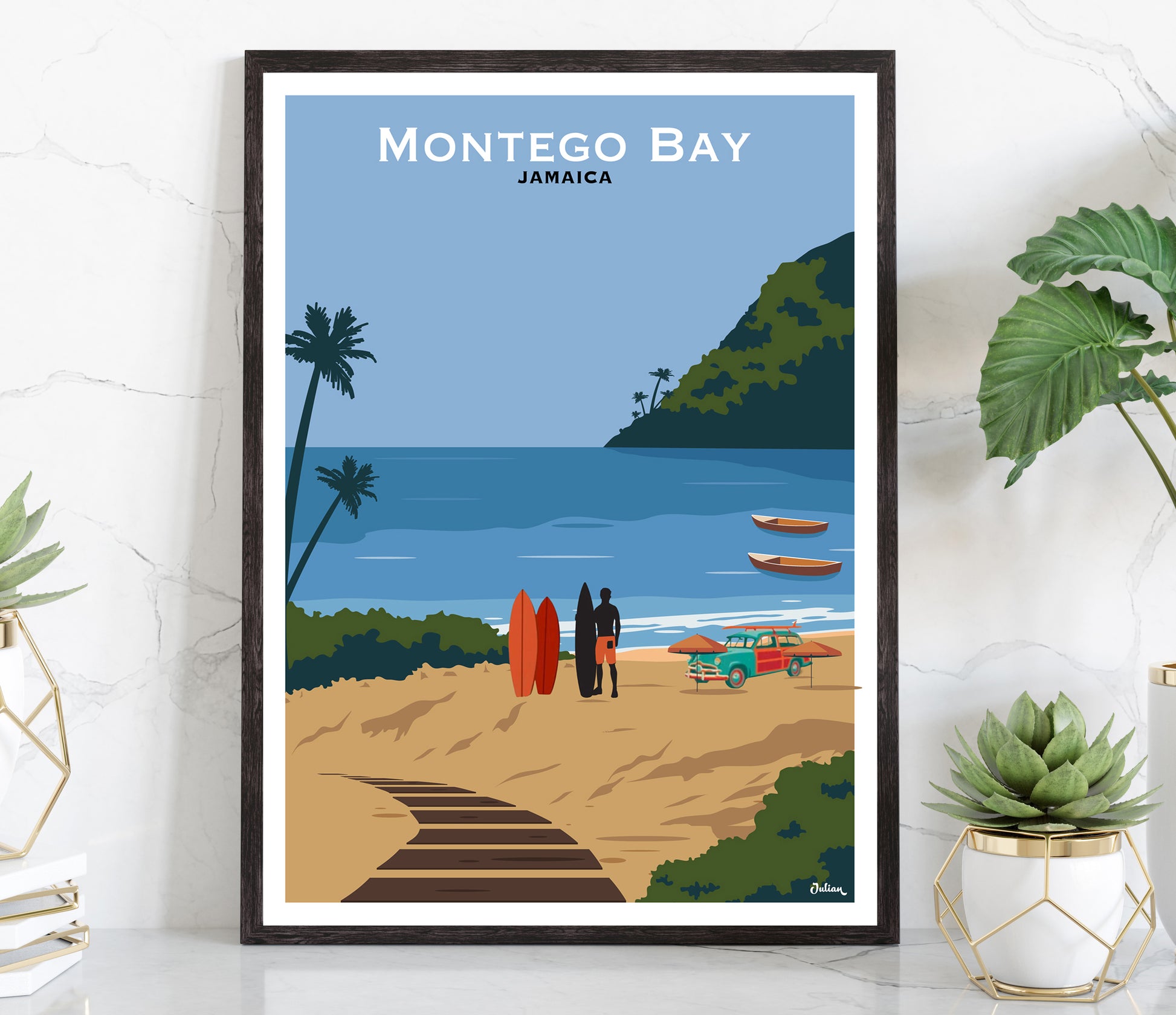 You are viewing the Montego Bay Print / Jamaica Travel Poster / Travel Illustration / Travel Keepsake / World Travel Poster / Gift Idea/ Vintage
