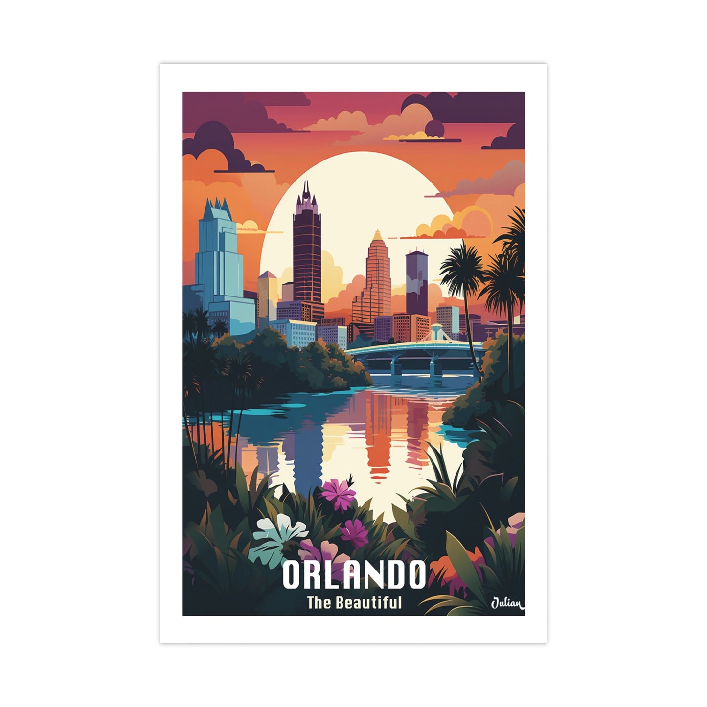Step into the vibrant heart of Central Florida with our enchanting travel poster, 'Orlando: The City Beautiful.'